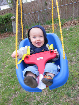 About a week ago, Alex went from having three teeth on the bottom of his mouth to having EIGHT teeth--4 on top and 4 on bottom! He was great, even in pain, and now can bite and chomp anything. Two of the teeth recessed and have since come back out and I can only imagine how much it hurt. But, he made it with only minimal fussiness. We are very lucky to have such an easy-going kid.